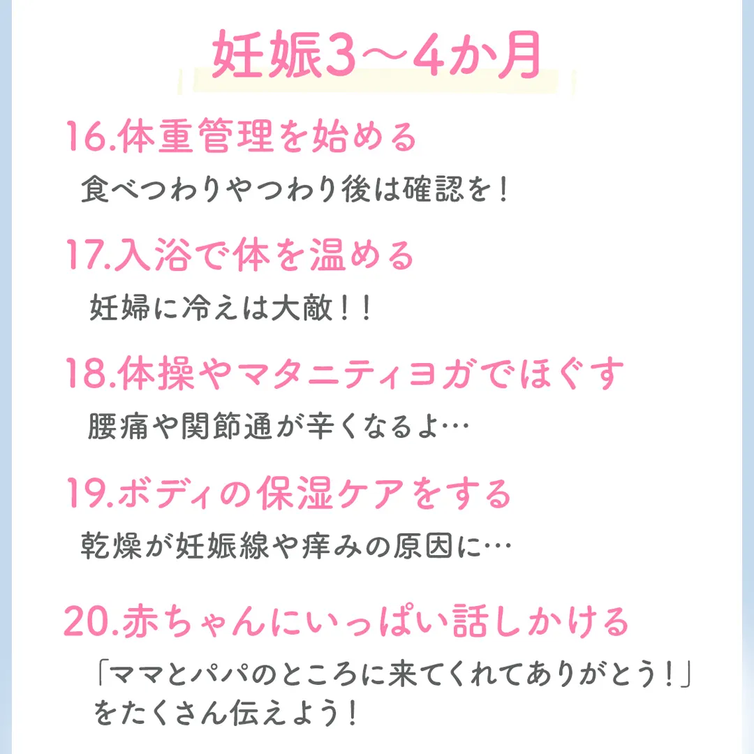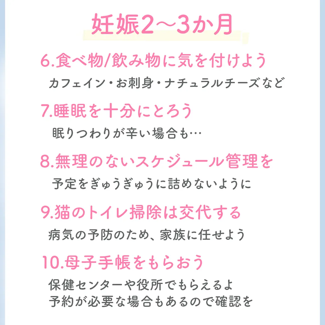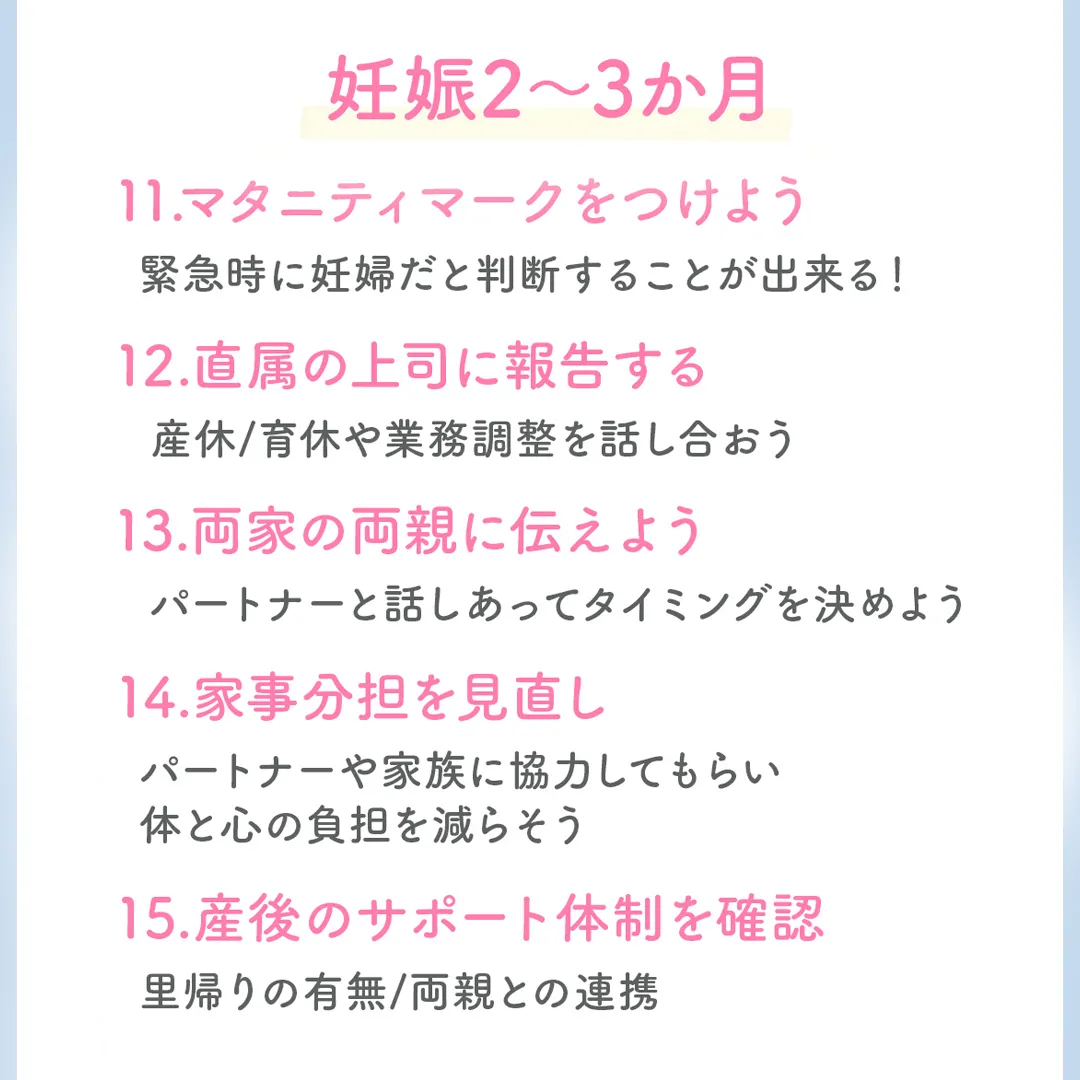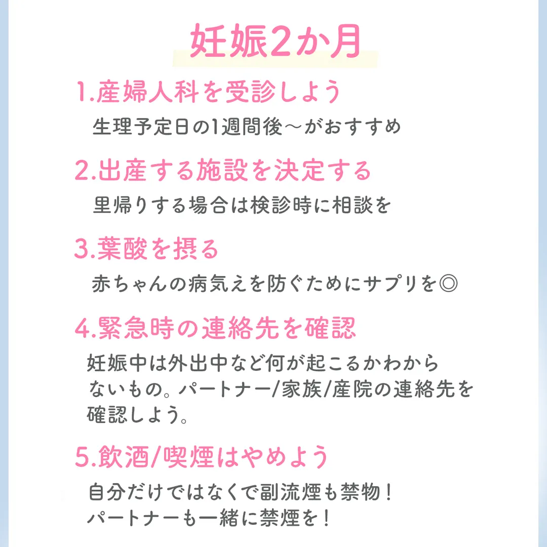 そんなあなたのために、妊娠2〜4ヶ月にやるべき事を分かりやすく画像にまとめました✨
