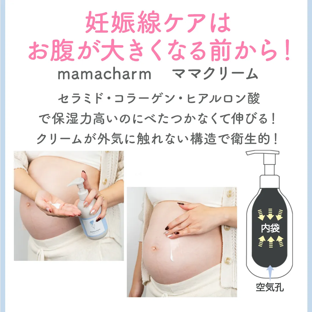 なので妊娠初期からこまめにケアしましょう🤗ママクリームとママオイルがおすすめです!