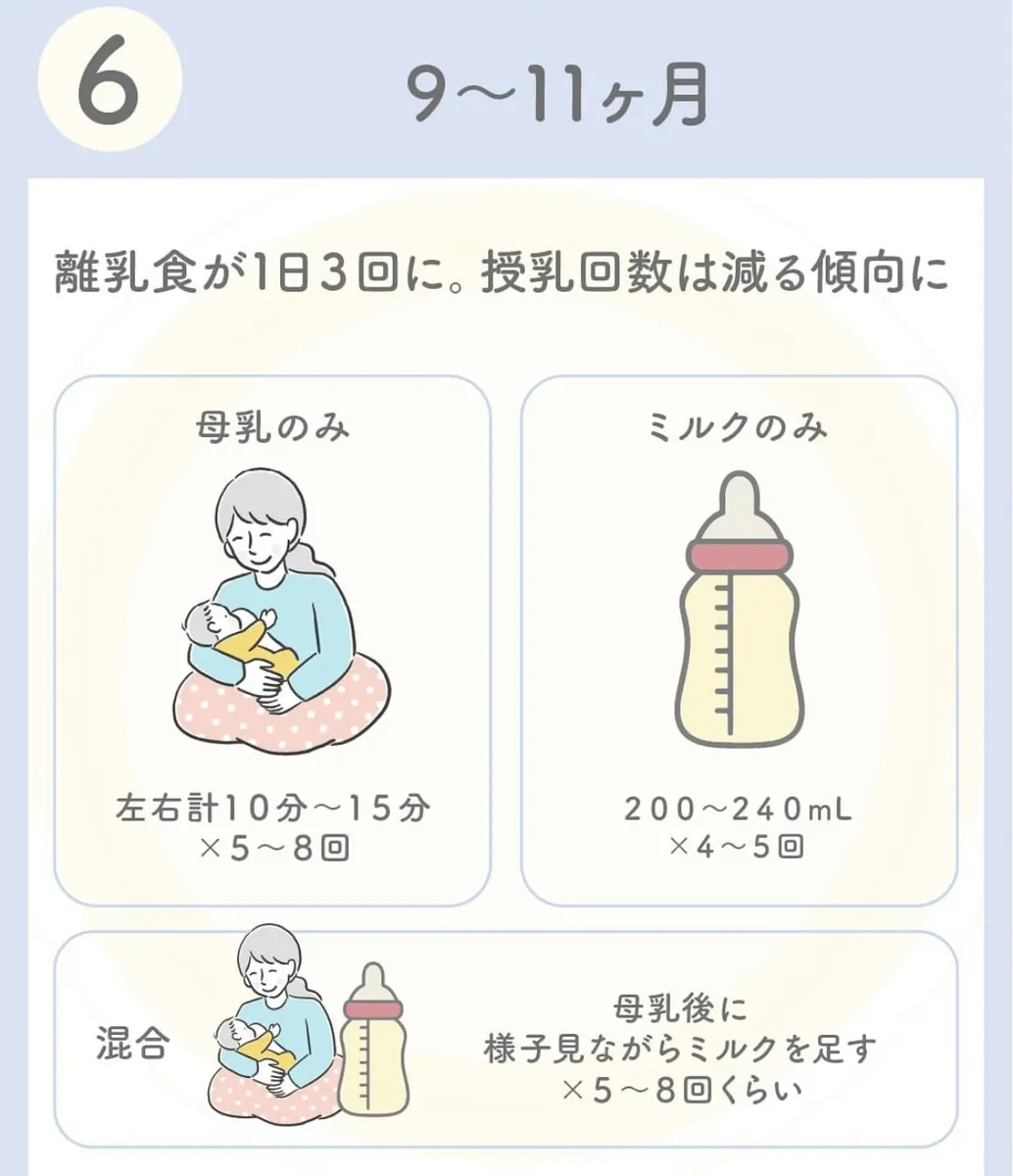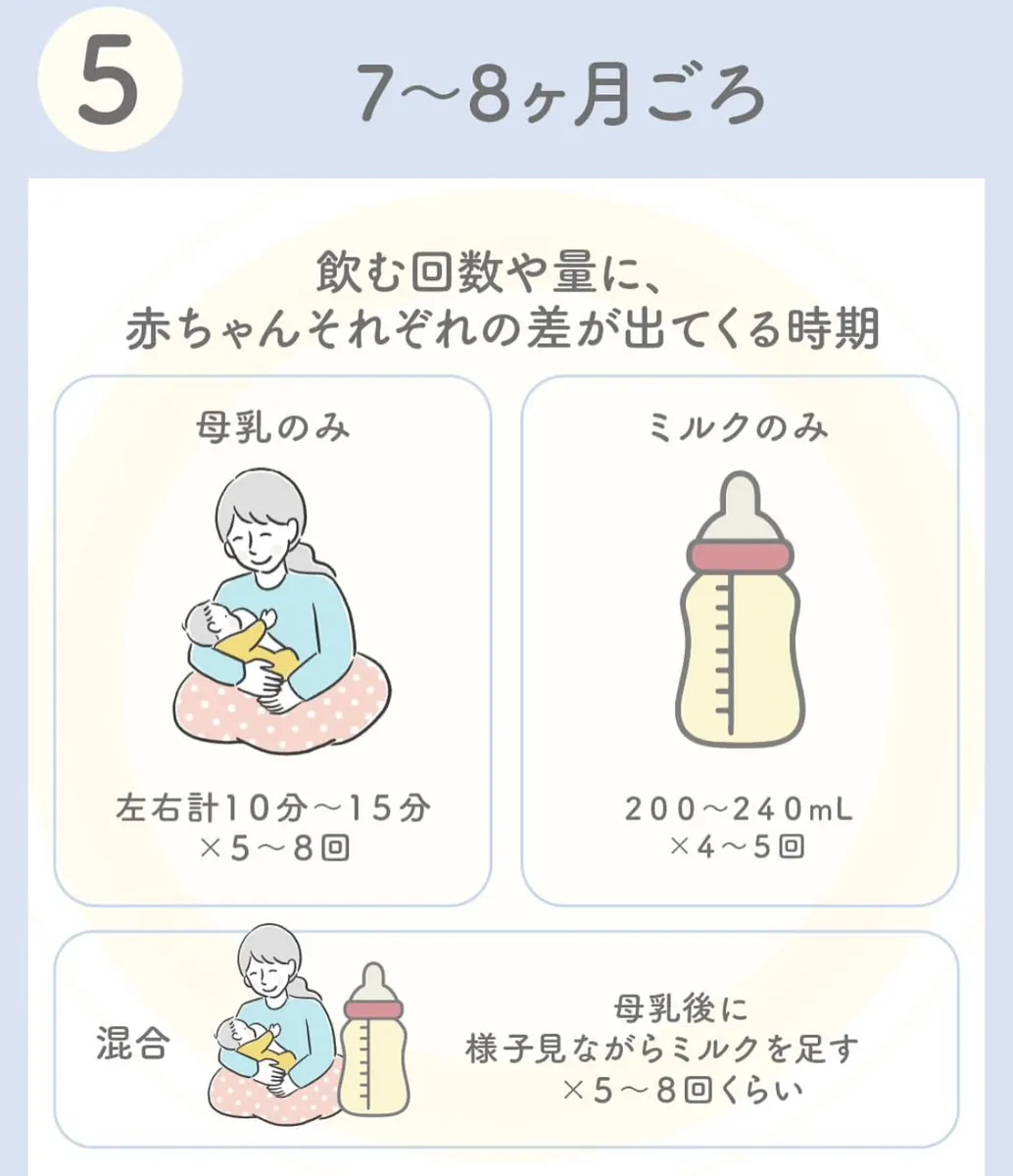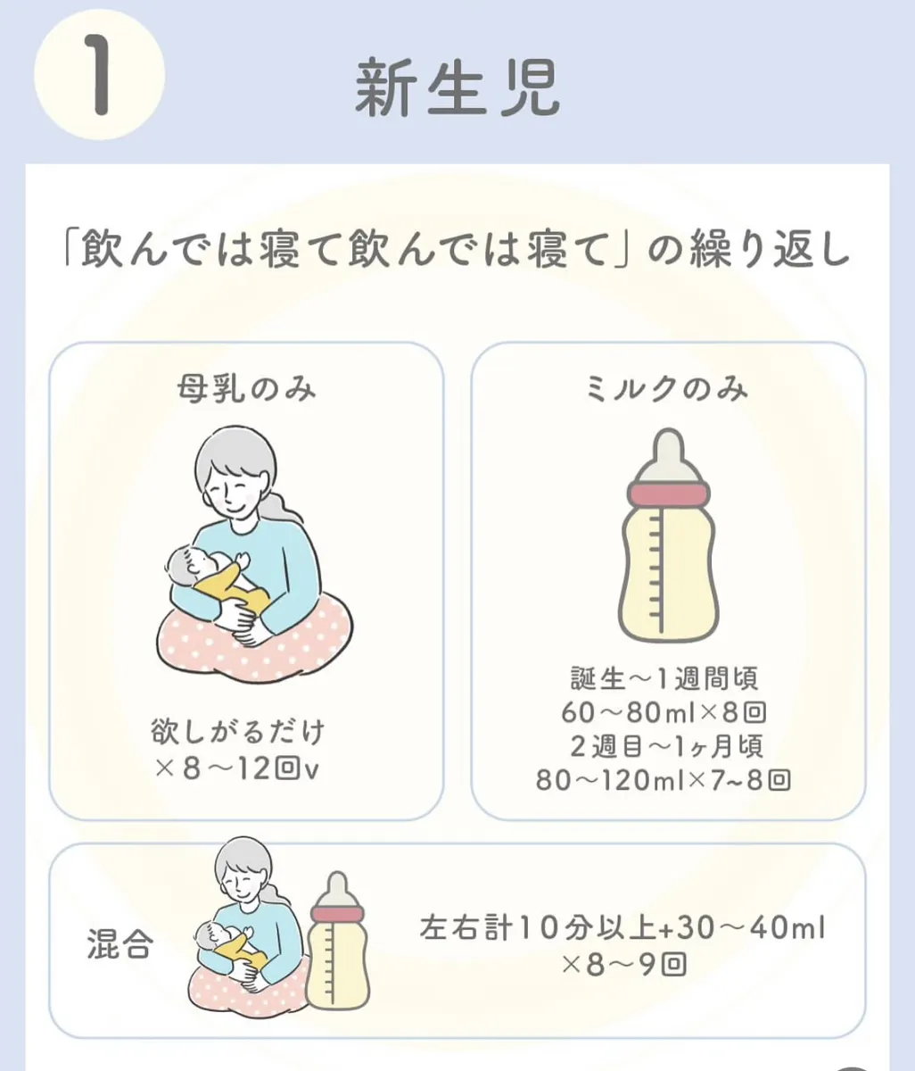 初めて知ったんですが、赤ちゃんのミルク量は月齢や、母乳・混合・ミルク育児かどうかによっても違ってくるとのこと!