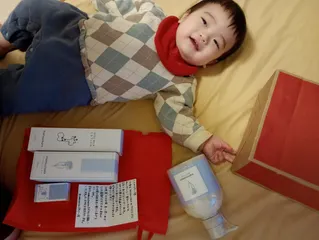 ママチャームクリスマスコフレキャンペーンでクリスマスプレゼント頂きました!もちみ君も興味持って触ってました!ミルクローションいい匂いでさしっかり保湿される♪手描きのメッセージカードとても嬉しかったです。✌あたたかくして保湿して冬を乗り切りましょう