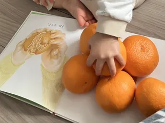 一年でとっても成長したね 2025年の思い出を投稿できるいい機会だと思ったので、投稿します✨ 2025年で1番感動したのは、みかんの絵本を読み聞かせていたらみかん🍊を本の上に並ばせはじめたことです!!絵のみかんと本物のみかんが同じことがわかるんだ!と感じて、自分で同じことに気づけたことも驚きだし、なにより手が大きく